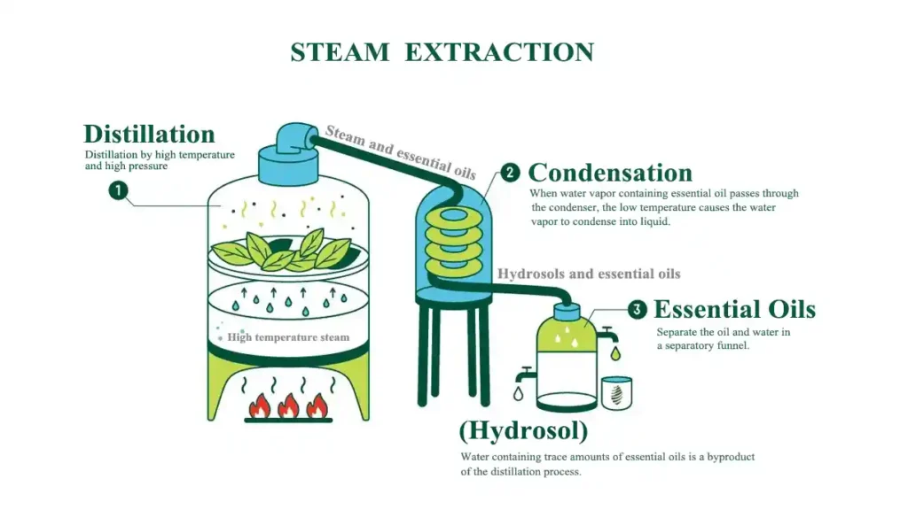 2. Steam Distillation: Workers steam-heat crude resin in stills. Volatile terpenes vaporize and condense into gum turpentine oil, leaving gum rosin behind.