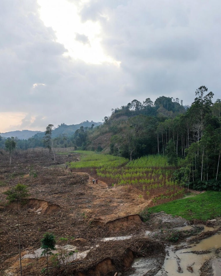 Aceh lost over 700,000 hectares of forest since 1990. Illegal logging, palm oil plantations, and mining stripped away nature’s flood defenses. Trees no longer hold soil or slow water. Steep slopes turned into deadly mudslides the moment heavy rain fell.