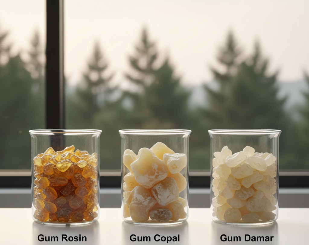 Formulators in adhesives, inks, varnishes, and coatings often talk about “pine‑based” or “natural resins” as if they were all the same. In reality, gum rosin, gum copal, and gum damar each have distinct properties that make them suitable for different end uses. Choosing the wrong one can affect film quality, gloss, drying time, and even regulatory compliance.