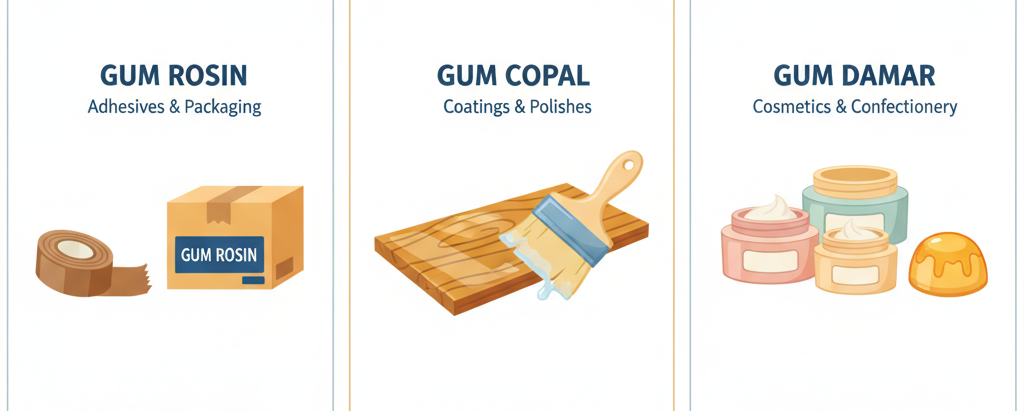 | Feature / Aspect | Gum Rosin (Gondorukem) | Gum Copal | Gum Damar |